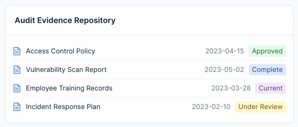 Automatically gather and organize compliance evidence for quick retrieval during audits